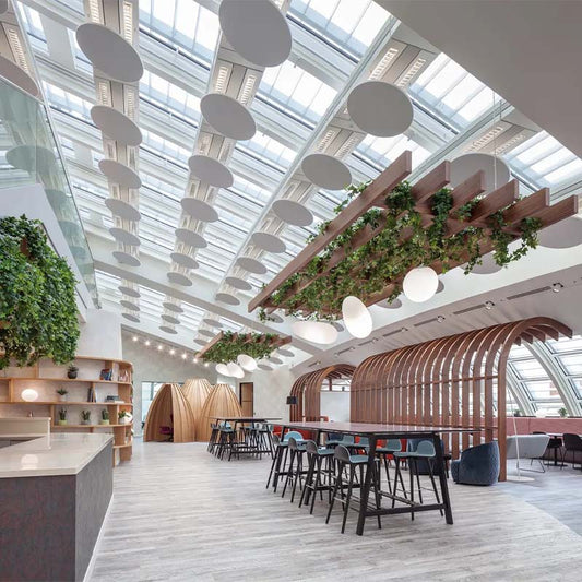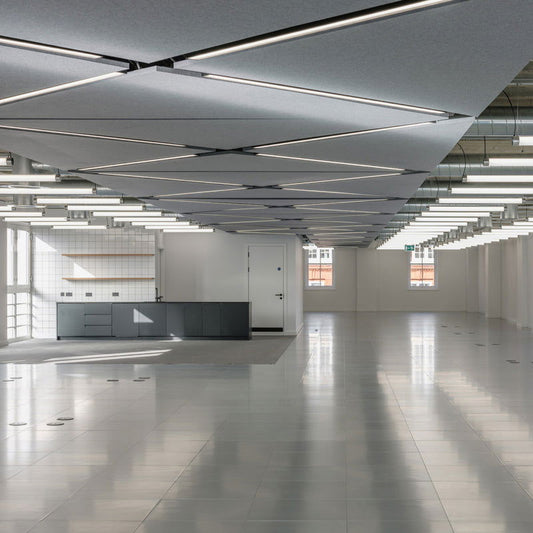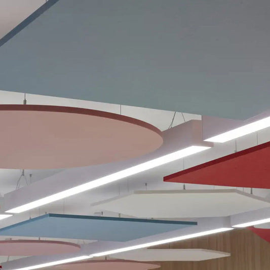 At Muffle, we're all about creating inviting spaces, both acoustically and aesthetically, which means we're delighted to be able to offer custom acoustic solutions. Whether you're looking for a particular colour or shape, or you'd like to incorporate lighting into your acoustic rafts, we can help.