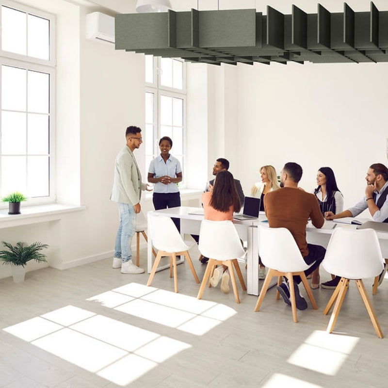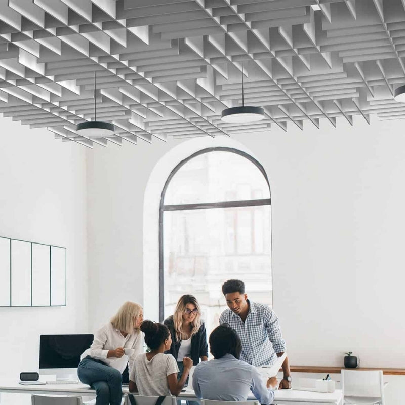 Grid is a suspended ceiling raft, made to be the perfect acoustic solution to reduce the noise you don’t want to create a quieter and more comfortable working space to concentrate in. The Grid is also able to adapt to the size of your space by being able to be sold as singular modules as well as multiples.