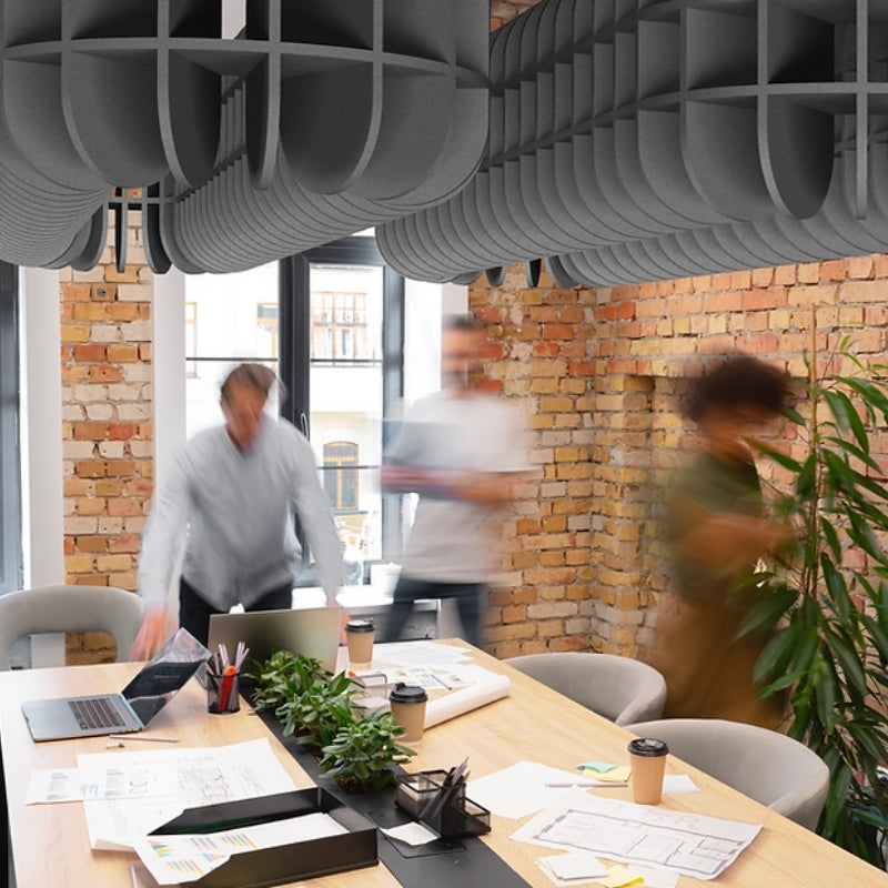 The Prime from Lumii’s StratoScape collection is an acoustic ceiling raft that brings both visual elegance and exceptional sound control to your space. Prime effectively reduces reverberation while adding a modern aesthetic by having a selection of bold colours to choose from.