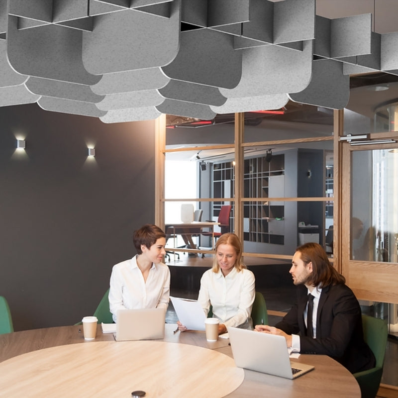Tartan is perfect for open spaces, the Tartan provides a cosy, noise-reducing atmosphere, while its classic tartan-inspired look adds a timeless touch to any environment. It is a stylish suspended ceiling module designed to control sound while enhancing the visual appeal of your space.