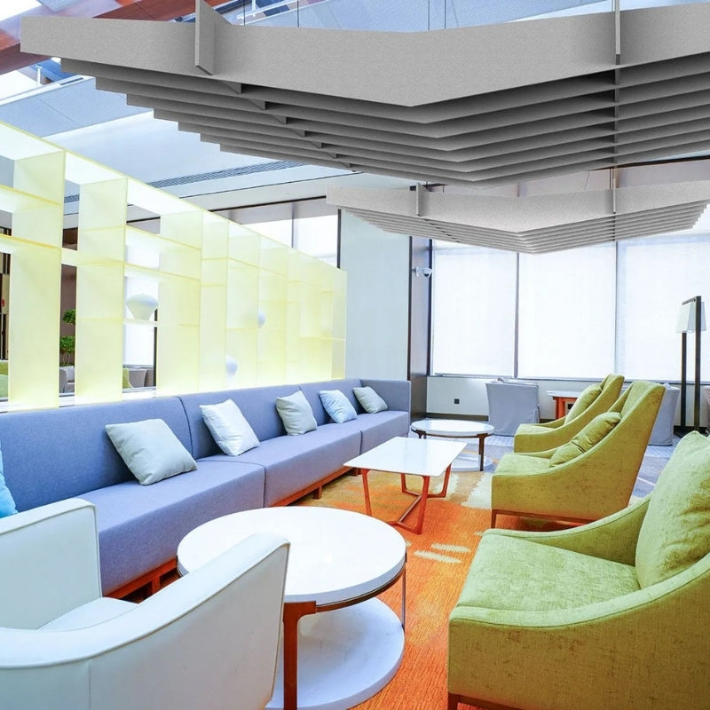 The Tide works for all environments, no matter the place the product is, Tide, aims to eliminate any unwanted sound to create a more serene space to focus in. Tide's modular design allows you to easily suspend individual or multiple units, creating a captivating ceiling landscape as well as being able to reduce reverberation.