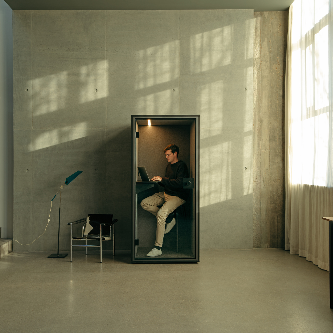 With built-in lighting, ventilation, and power supply facilities, the MufflePod | Focus is the perfect option for individual, focused work.